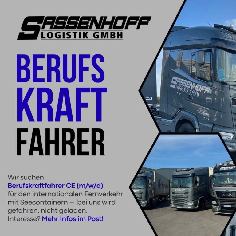 Wir suchen engagierte Berufskraftfahrer (m/w/d) mit Führerschein CE, die Lust haben, Seecontainer im internationalen Fernverkehr zu bewegen – ohne ständiges Be- und Entladen. Wenn du gerne zuverlässig unterwegs bist und einen modernen Arbeitsplatz auf der Straße suchst, bist du bei der Sassenhoff Logistik GmbH genau richtig.